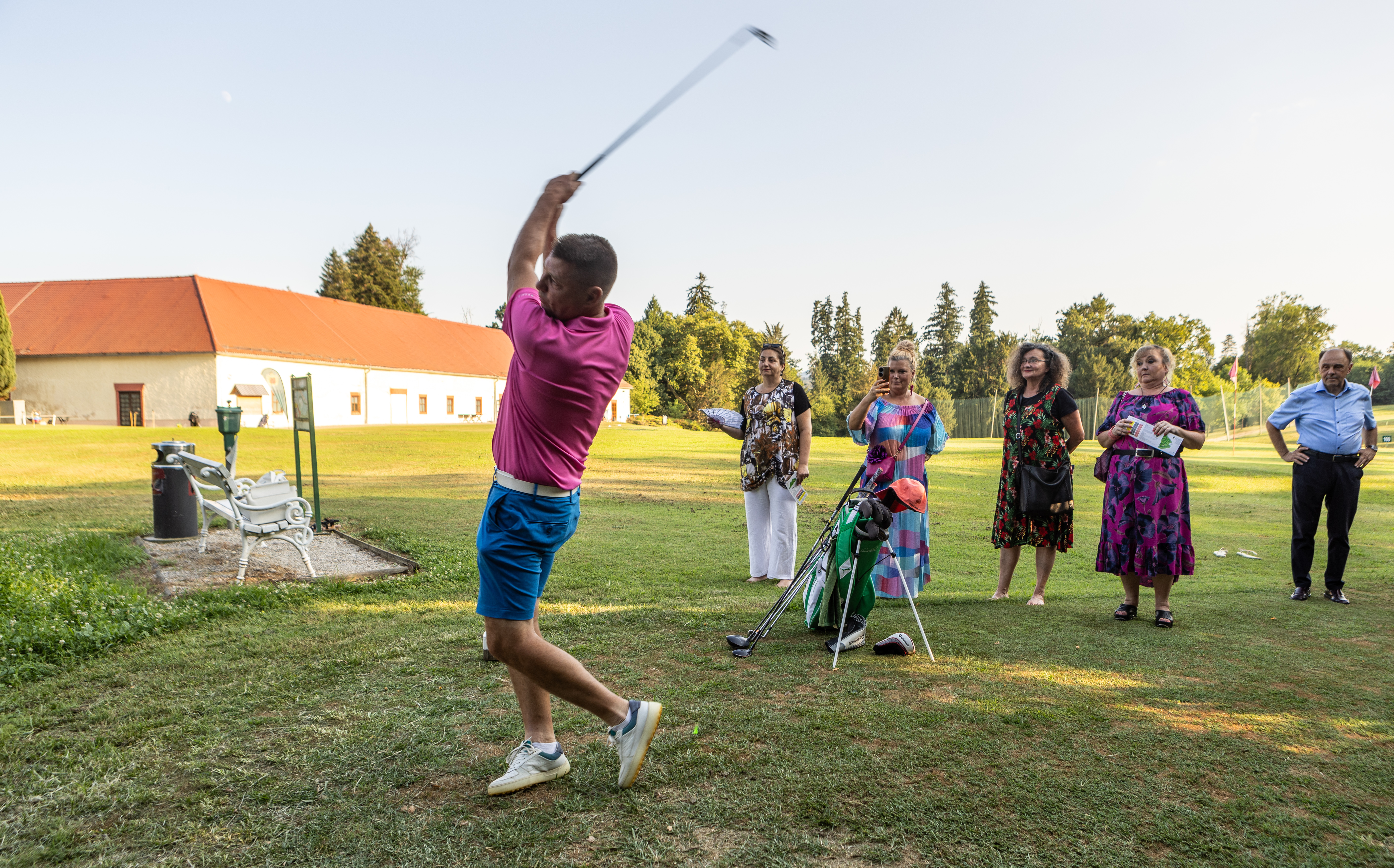Prije nego se uputimo u restoran moram ti reći da je ova impozantna građevina okružena stoljetnom šumom oko koje je poznati arhitekt Donald Herradine projektirao golf terene s 18 igrališnih polja, a teren glasi za jedan od najzahtjevnijih u ovom dijelu Europe, no to nas nikako nije zaustavilo da se, iako potpuno amaterski, okušamo u ovom sportu. I moram vam priznati – svidjelo nam se!