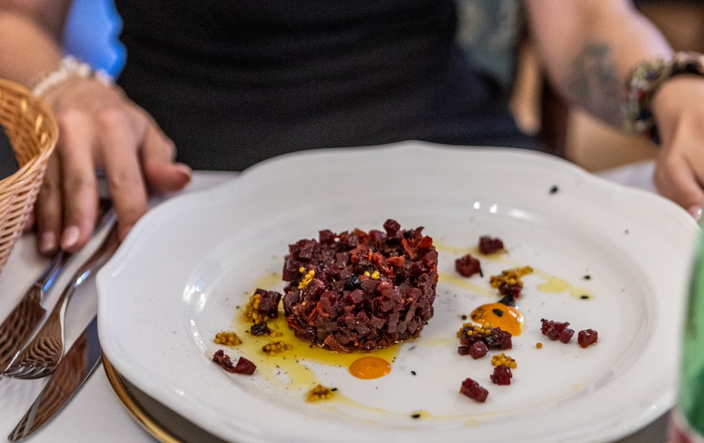 Za hladno predjelo poslužen je carpaccio od ekološki uzgojene govedine i ukusni tartar od cikle.