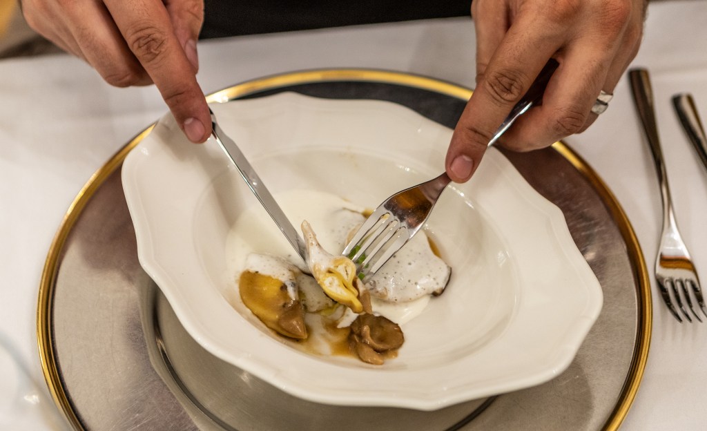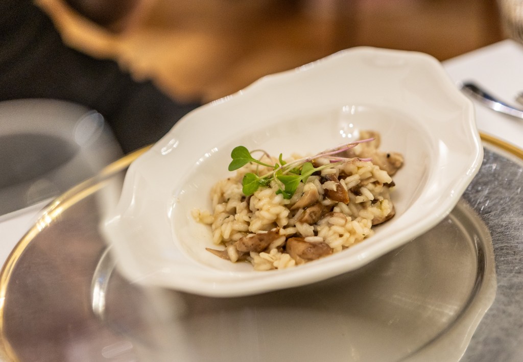 Toplo predjelo bili su sjajni ravioli punjeni sirom, dimljenom pastrvom i mladim špinatom te rižoto s vrganjima i kremom od sira.