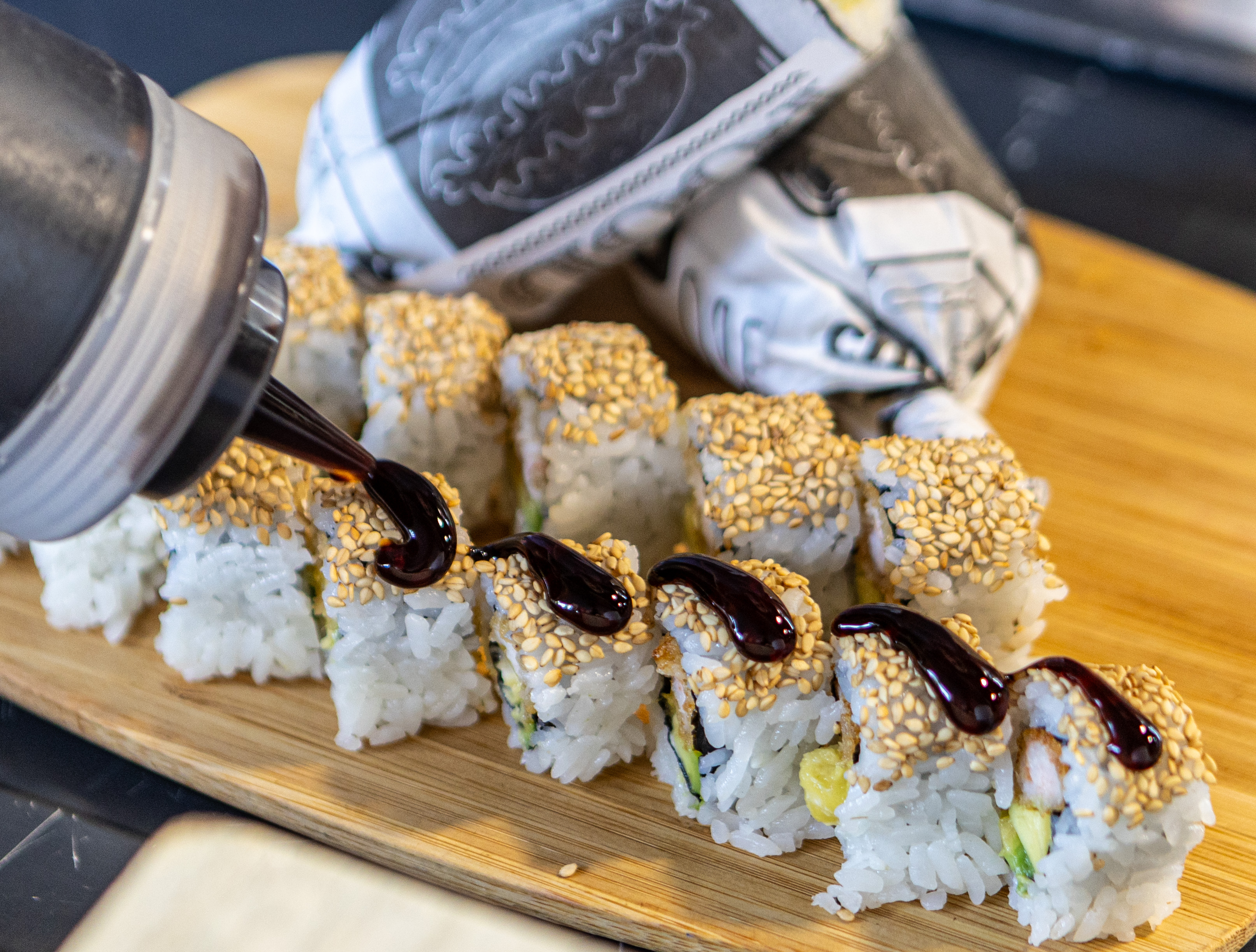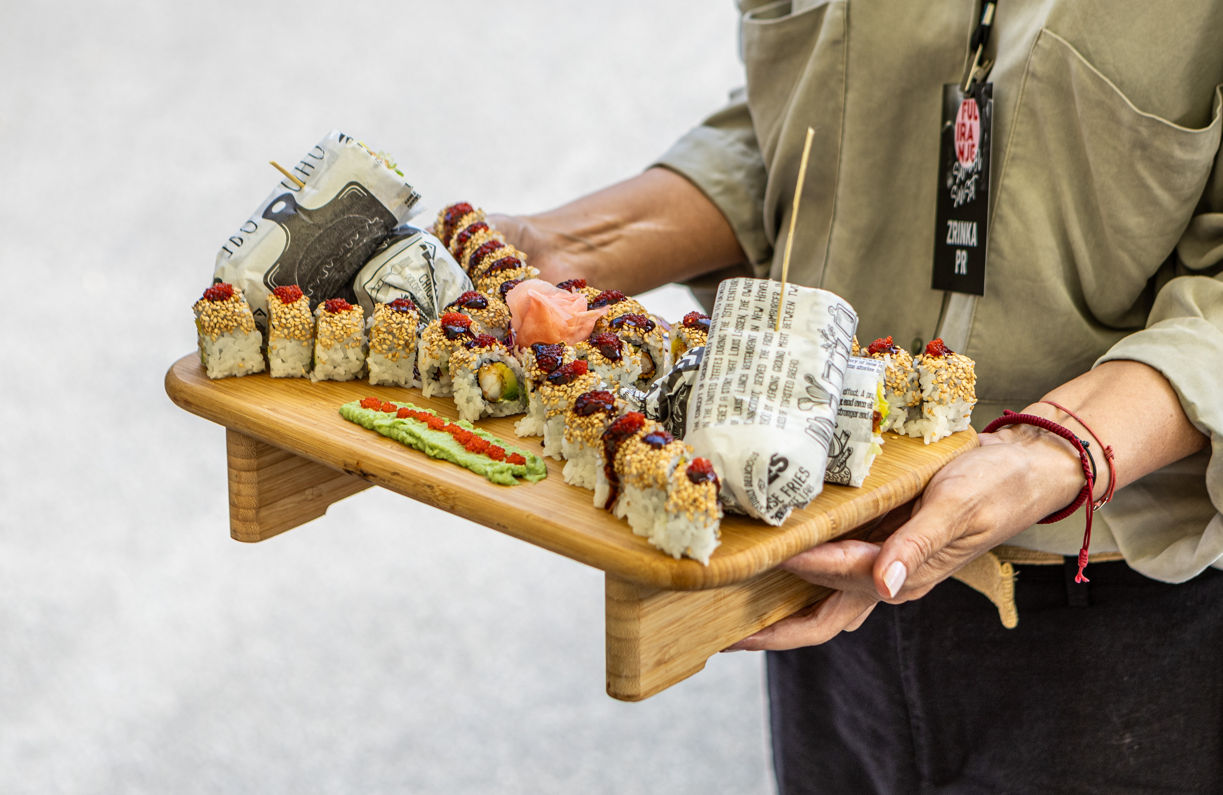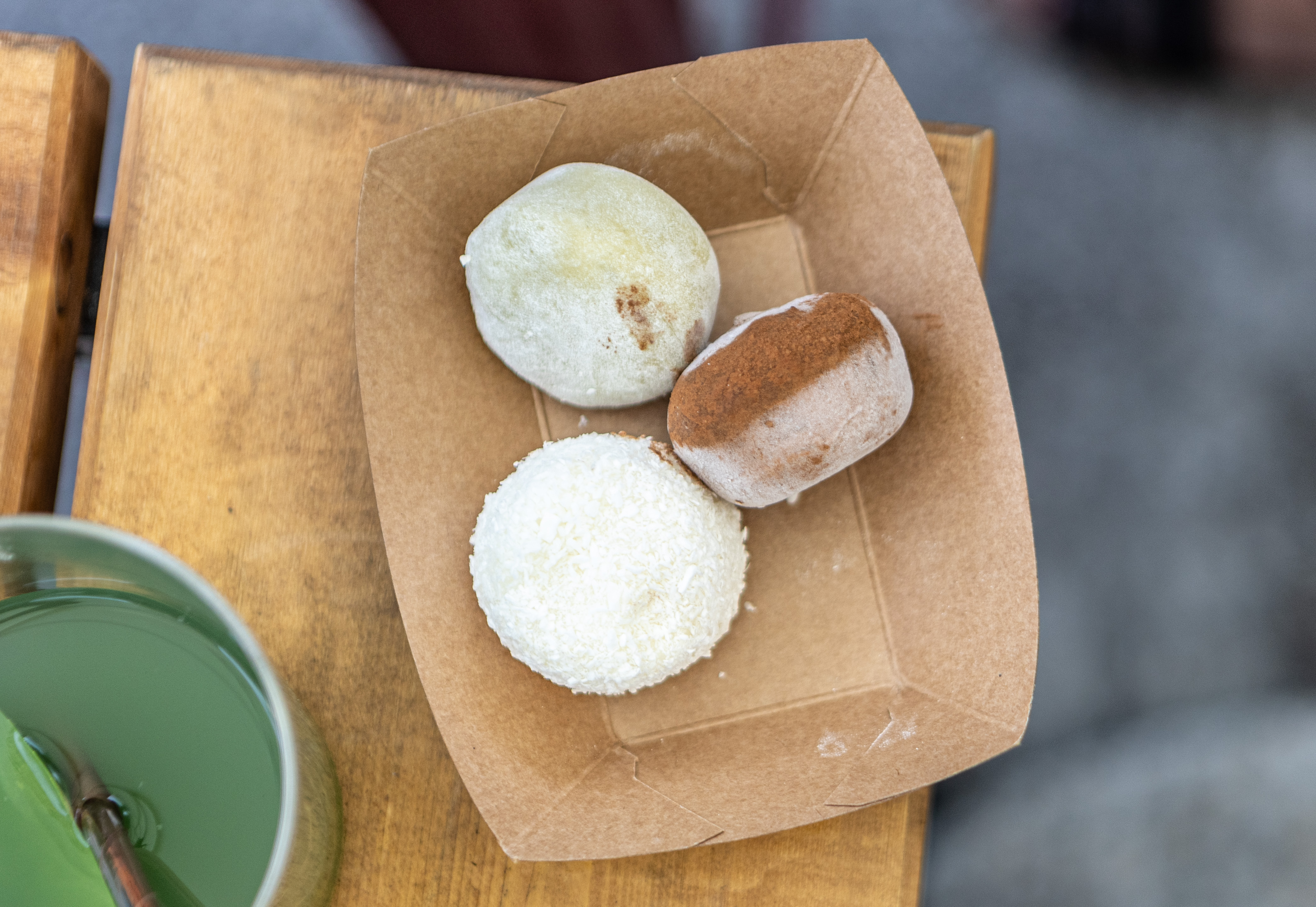 Na kućici Sushi & poke by SoHo isprobali smo sushi koji je napravljen s kozicama u tempuri, mangom, avokadom i unagi umakom. Svi okusi su lijepo izbalansirani. Cijena je 8.50 eura. U ponudi se nalaze i sohorritosi što je novost na spomenutoj kućici. Dolaze u kombinaciji s crispy piletinom, kozicama u tempuri ili dimljenim tofuom. Cijena je 8 ili 9 eura ovisno o vrsti. Za zasladiti se tu su i četiri okusa mochi sladoleda – kokos, čokolada, marakuja i pistachio. CIjena jednog je 1.50 euro.