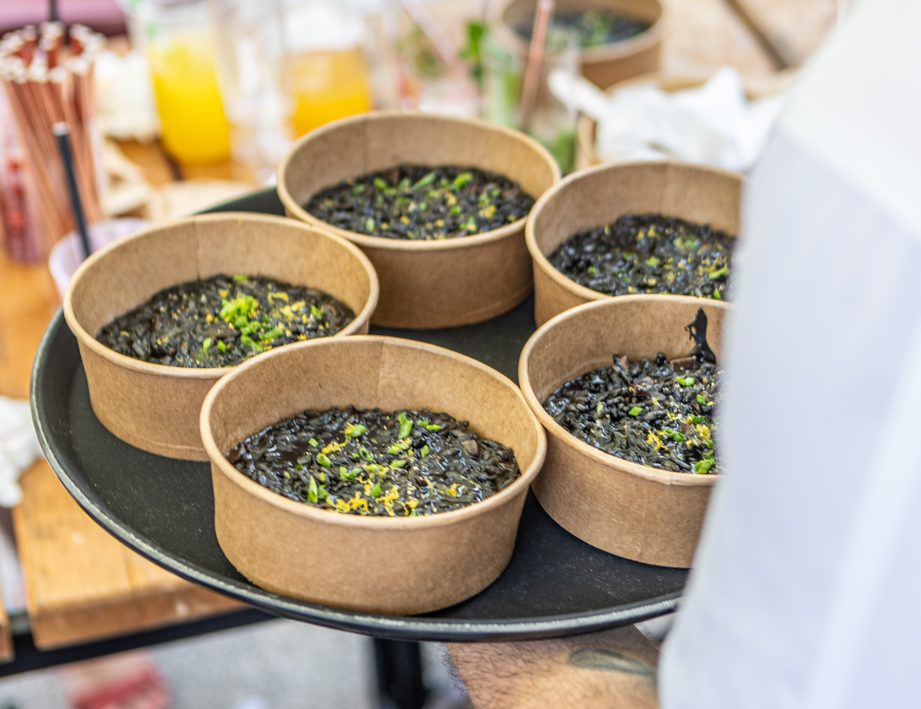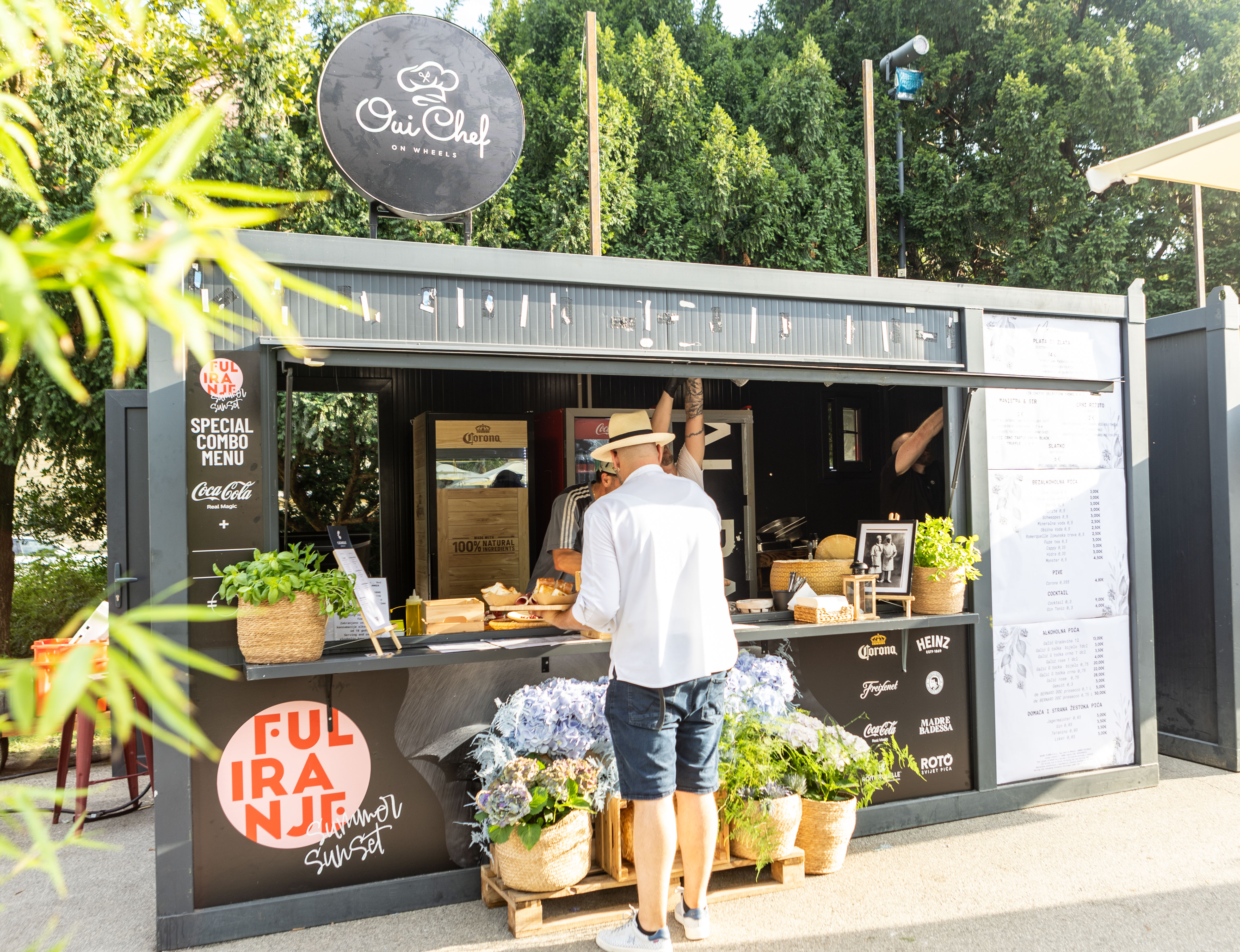 Kod Oui Chef on wheels isprobali smo crni rižoto u kojem svježe ribana korica limuna daje sjajnu aromu. Cijena je 12.00 eura. U ponudi je takozvana “Plata od zlata” na kojoj se mogu pronaći suhomesnati specijaliteti, sirevi i masline koji dolaze uz focacciu, a za to je potrebno izdvojiti 14.00 eura.