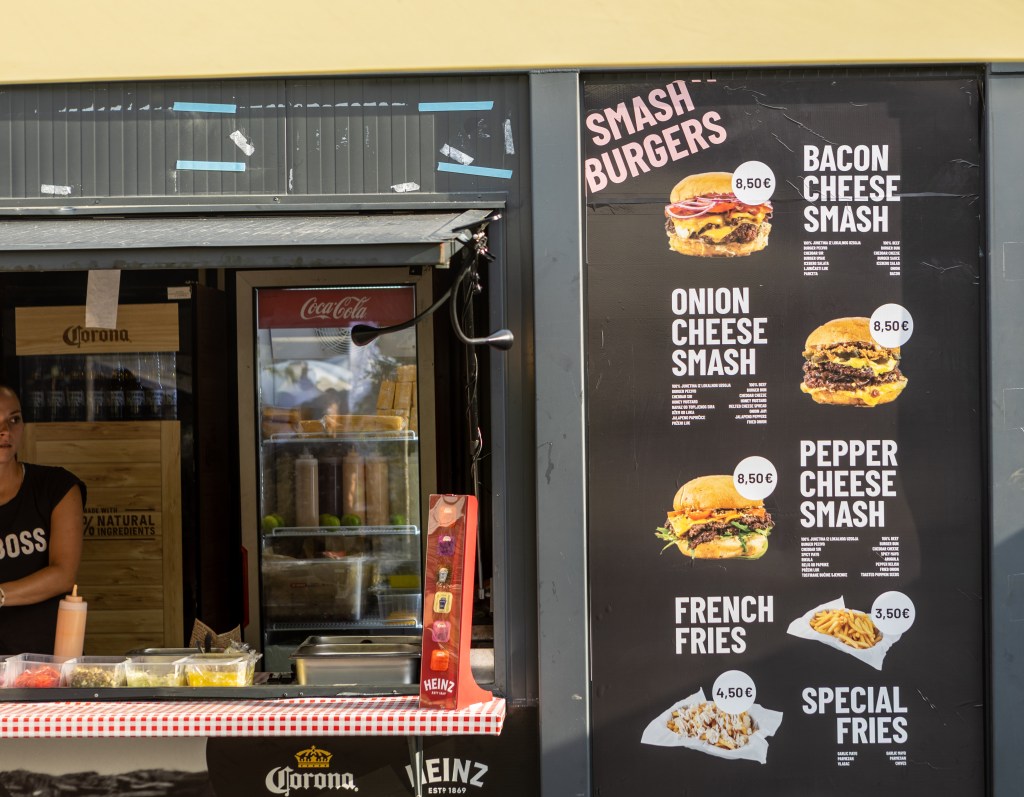 Isprobali smo burger pepper cheese sa kućice Burger Institute by Mate Janković. Ovaj put Mate je došao sa tri različita smash burgera – bacon cheese, onion cheese i pepper cheese. Sočan smash burger kojem poseban okus daje relish od paprike i tostirane bučine sjemenke. Cijena burgera je 8.50 eura.