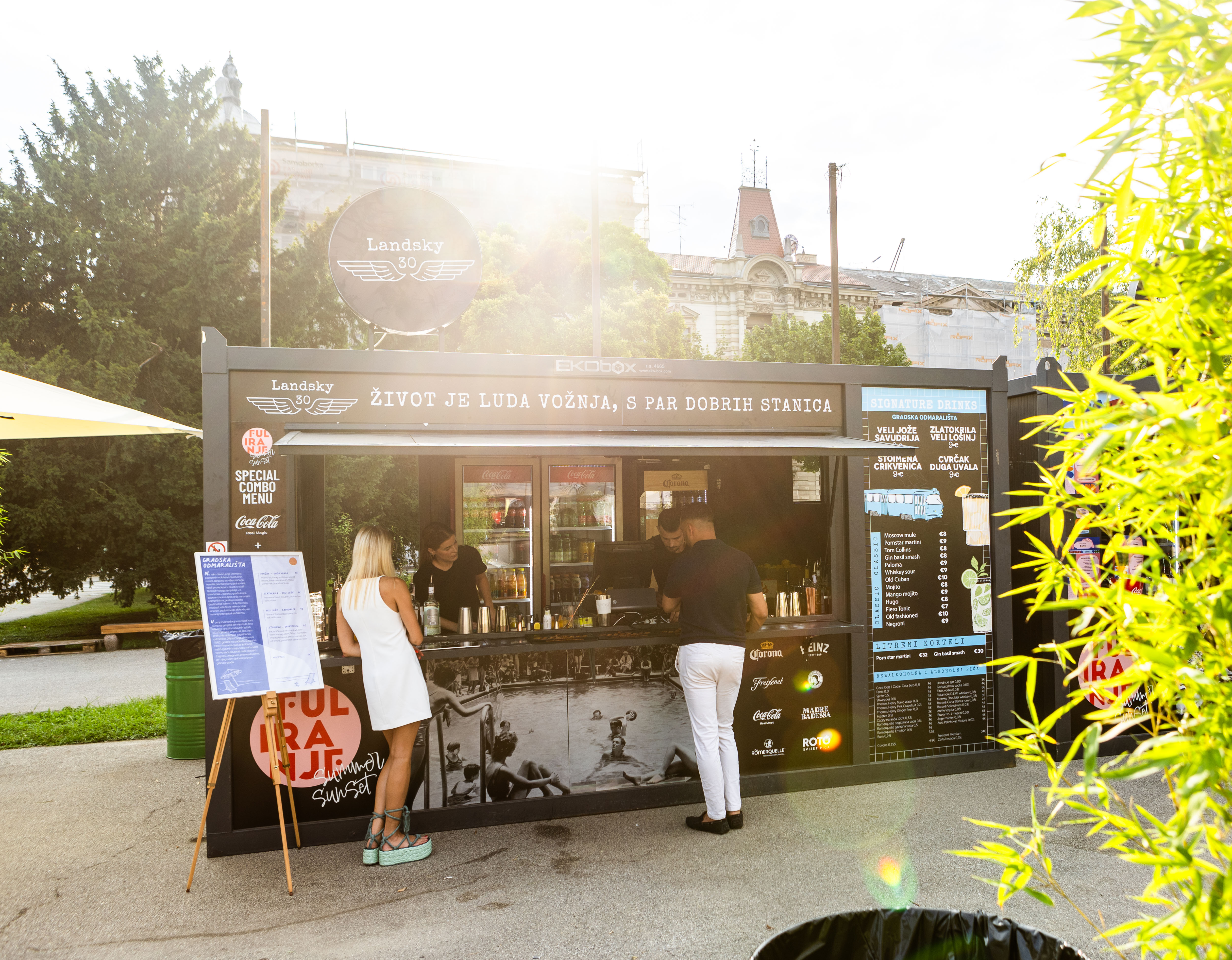 Koktelima smo nazdravili na kućici Landsky 30, imaju četiri signature koktela napravljena baš sa Fuliranje summer sunset i njihova cijena je 9.00 eura. CIjene ostalih koktela kreću se od 7 do 10 eura.
